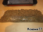 На рабочую поверхность стелем пищевую пленку или целлофановый пакетик (только надо его разрезать, чтоб он был в один слой) и на нее выкладываем фарш, разровнять по всей поверхности, толщиной где-то 1-1,5 см.