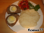 Этот рулет из фарша с мятой, а начинка - вкрутую сваренные яйца. Получается мясо очень вкусным. Попробуйте и вы!