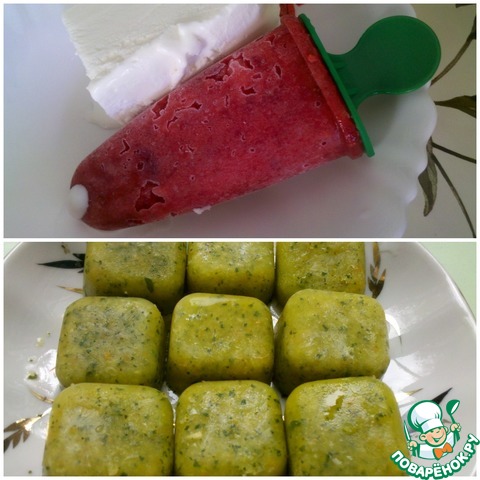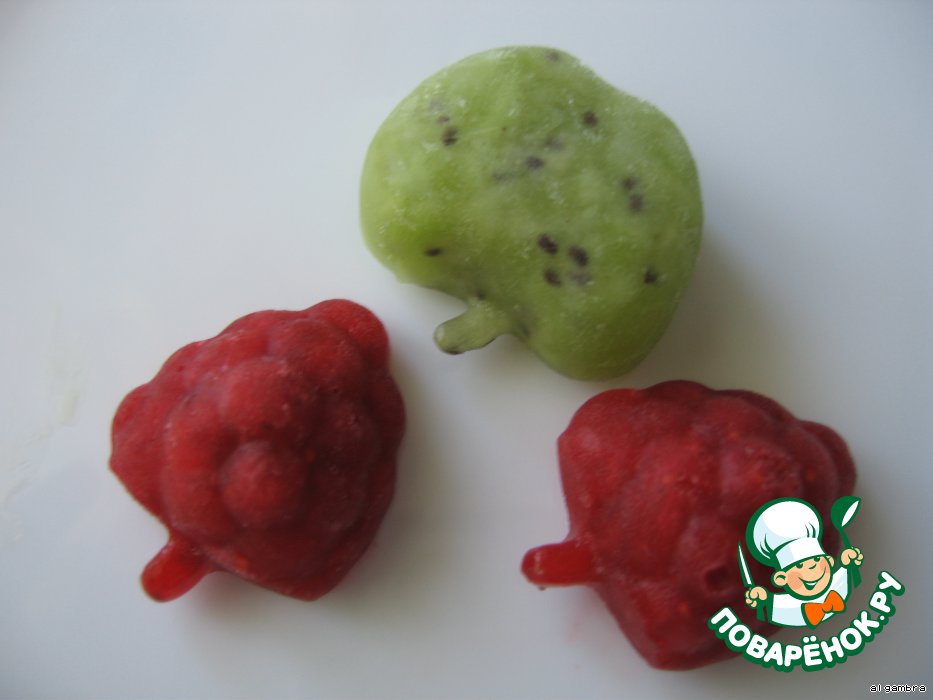 Доставать из морозилки и выкладывать на порционный десерт непосредственно перед подачей на стол. А яблочки у меня из киви! ;-)