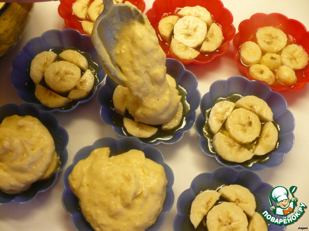 Рецепт «Маффины с бананом в имбирно-апельсиновой карамели»: