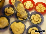Когда карамель начнет темнеть и станет гуще, снимаем с плиты и разливаем ее в смазанные растительным маслом формы для маффинов.