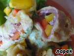 Остужаем, выкладываем на тарелку на листья салата. Можно разрезать на две части. Все! Можно закусывать!