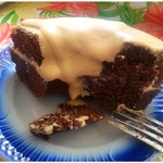 Затем вливаем стакан кипятка и еще раз взбиваем, чтобы получилась равномерная масса. Выливаем в противень и в духовку на 25-30 мин. при темп.180*С. Ориентируйтесь по своей духовке, готовность проверяем деревянной шпажкой.
