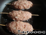 Фарш формируем в виде колбасок, нанизываем на шпажки и жарим на большом огне до золотистой корочки