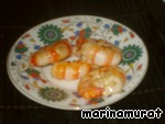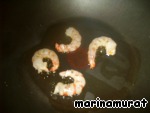 Пока икра охлаждается, мы будем жарить креветки. Полторы минуты и они готовы!!!