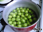 Моем алычу, кладем в кастрюлю и наливаем воды так, чтобы покрыть фрукты, варится она очень быстро, максимум 10 минут после закипания