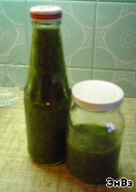 Получившийся соус разливаем в банки-бутылки и ставим в холодильник. Долго он, конечно, не простоит (неделю, две), поэтому готовить его в больших количествах не надо. Вот это получилось из вышеуказанного количества продуктов. В нашем холодильнике это долго не задержится :-D