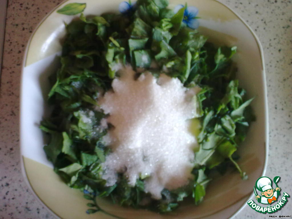 Щавель порубить и добавить сахар. Перетереть.