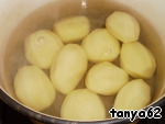 Очистить картофель, чтобы чистого веса было 1 килограмм. Налить в кастрюлю воды и вскипятить. В кипящую воду опустить картофель и варить до готовности. Посолить по вкусу.