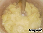 Слить воду с вареного картофеля, немного остудить, добавить готовый лук и потолочь (блендером или протереть через сито).