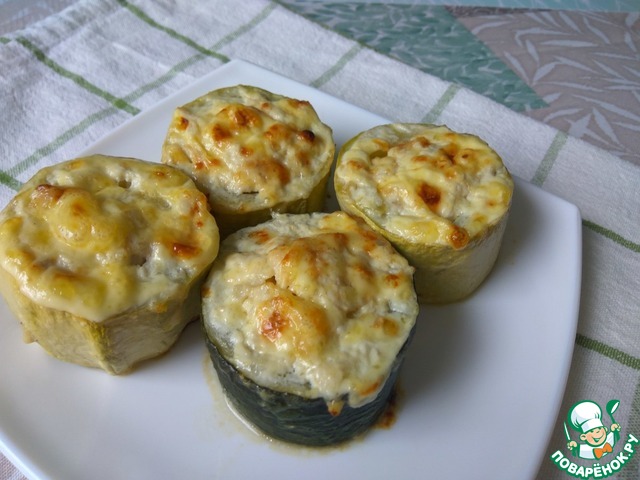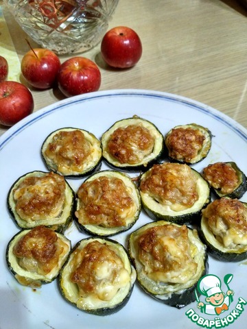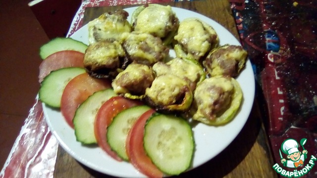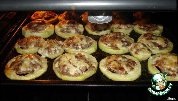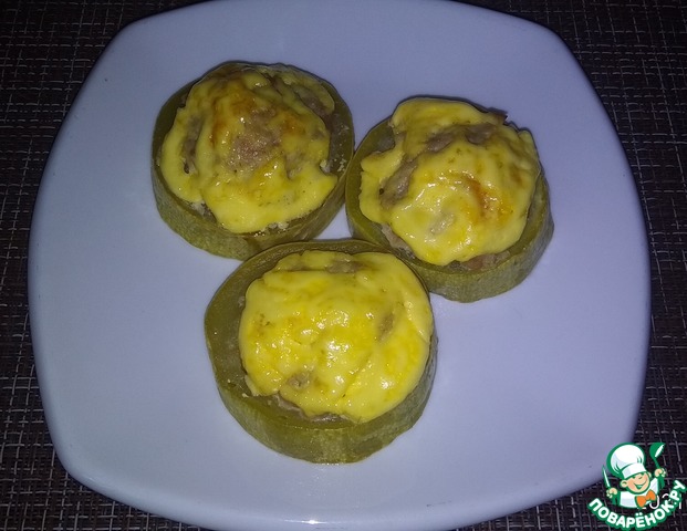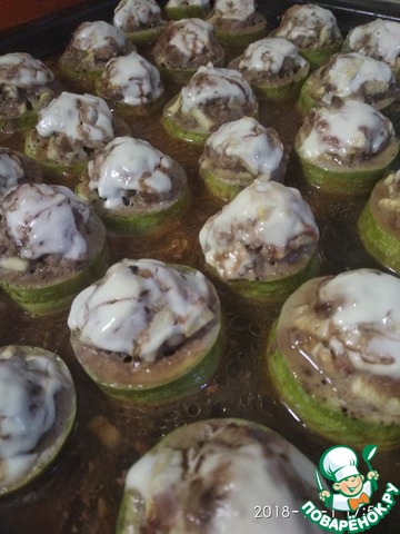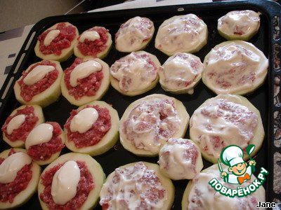 Кружочки кабачка, запеченные с фаршем и майонезом