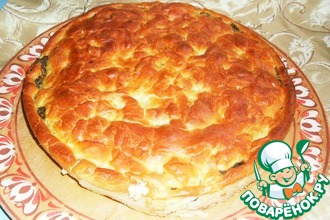 Выложить начинку, закрыть раскатанным тестом (меньшей частью). Защипать края.