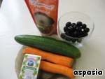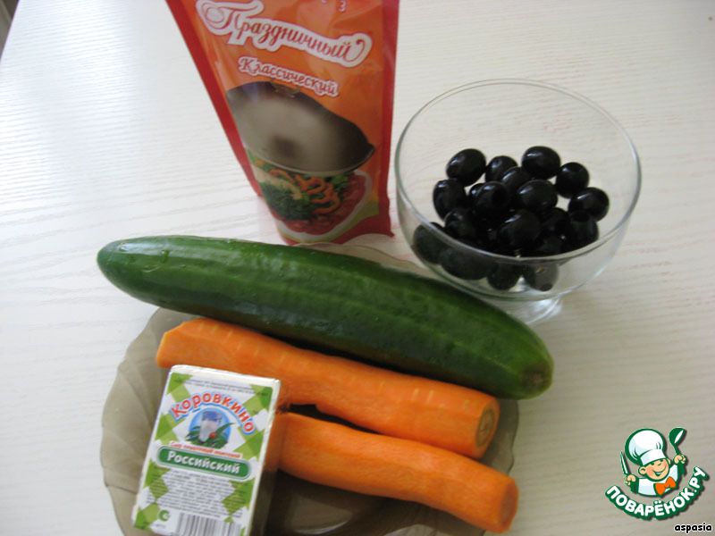 Подготовить ингредиенты: очистить морковь, вымыть огурец (он должен быть крупным для лучшей нарезки)