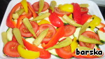 Нарезать цуккини, помидор - кружочками, паприку - дольками