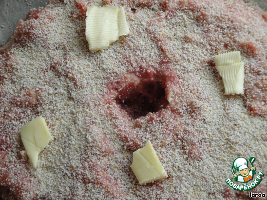 Выложить в форму, посыпать панировочнысми сухарями, положить кусочки сливочного масла. И выпекать до готовности.