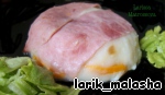 В порционные формочки выложить ветчину или бекон. Если хотите, то смажьте формочки маслом. Если нет маленьких формочек, то можно сделать в большой форме: обложить ее ветчиной.