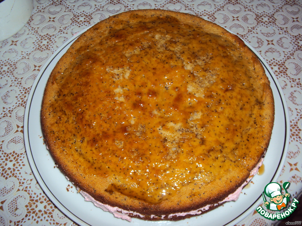 Сверху накрыть вторым коржом, сбрызнуть сиропом.