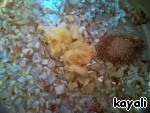 Добавить измельченный чеснок и молотые семена кинзы. Обжарить до золотистого цвета, постоянно помешивая. -