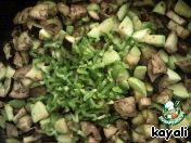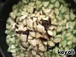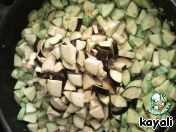 Кабачки и баклажаны крупно порезать. Лук мелко нашинковать. Перец мелко нарезать.