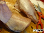У меня были две тушки морского окуня. Чистить рыбу я не люблю. Поэтому, надрезав шкурку у плавников, просто сняла ее как чулок. Если процесс чистки рыбы вас не напрягает, то можете приготовить окуня и в шкуре.