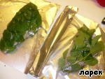 Заворачиваем в фольгу и на 30 минут в духовку при 200 градусах.