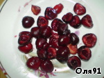 Берем черешенку, удаляем косточку и режем на кусочки (я резала на 4 части)