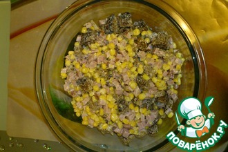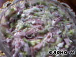 Все перемешиваем, заправляем сметаной (или майонезом), перчим и подсаливаем по вкусу. -