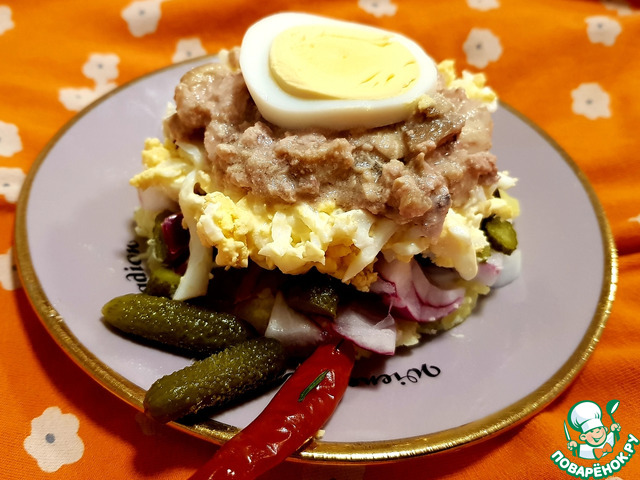 Ингредиенты для «Слоеный салат с печенью трески»: