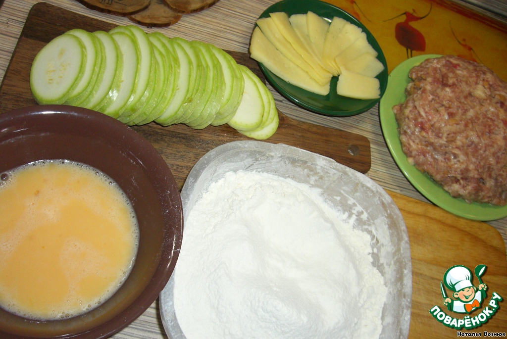 Ингредиенты для «Кабачковые язычки с фаршем и сыром»: