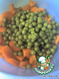 • Морковь очистить, нарезать кубиками, добавить горошек.