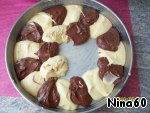 Разделить массу на две части. В одну часть добавить 2 ложки какао.