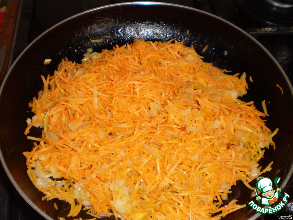Добавить морковь. Немного обжарить и добавить