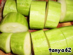 Кабачки поскрести и нарезать бочоночками, по 5 сантиметров высотой.