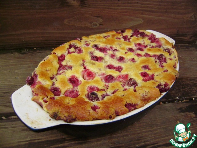 Выливаем яичную смесь и сверху выкладываем ягоды. -