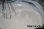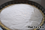 Делаем заливку. Сметану взбиваем с сахаром и ванильным сахаром. Добавляем по ложке крахмала и муки. Ещё раз взбиваем до однородности.
