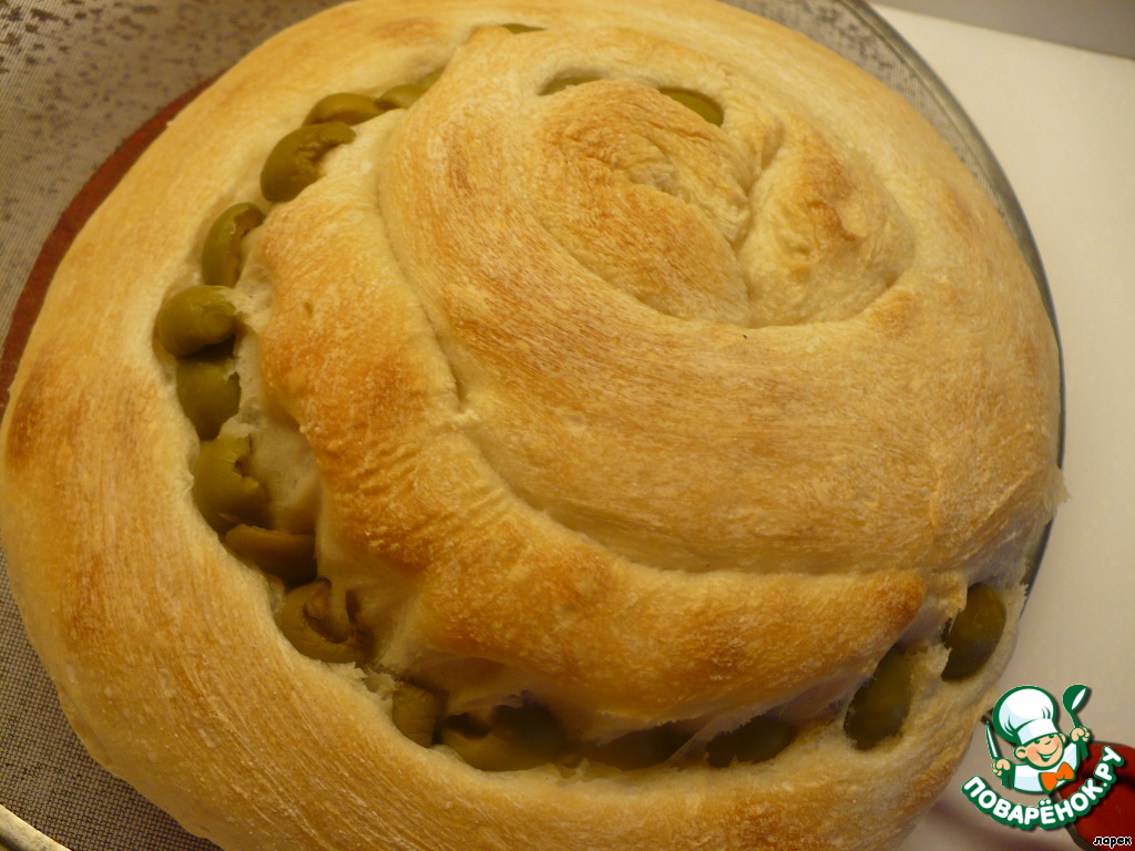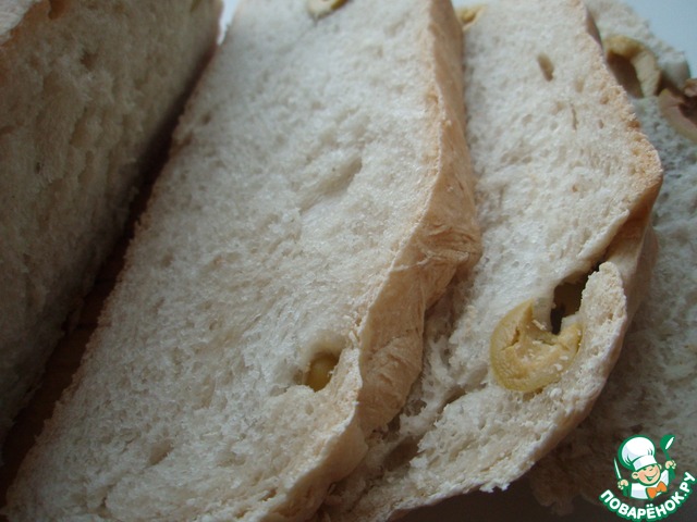 Очень мягкий и ароматный домашний хлеб с острым вкусом зеленых оливок.