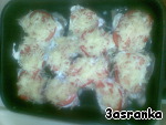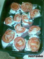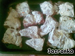 Режем филе на небольшие кусочки, выкладываем на противень. Солим. Смазываем майонезом, посыпаем перчиком.
