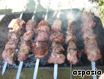 По приезду на турбазу, часа через три, начинаем готовить мангал: просим хозяина развести огонь, угли насыпаем сами, начинаем нанизывать мясо...