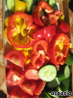 Нарезаем овощи, зелень, все раскладываем на плоское блюдо и ждем...