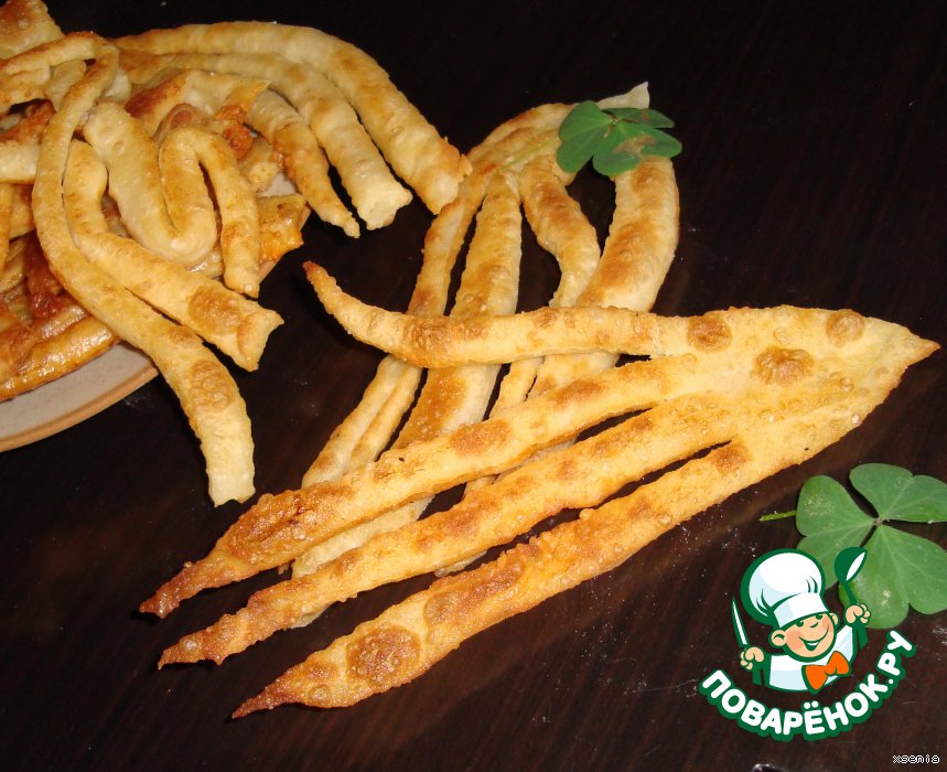 Ну, и не только к пиву.. И с чайком вкусно ) Опять я вместе со своим любимым тестом и еще одним, очень вкусным вариантом из него и сыра. Точнее не одним, а сразу двумя. Это называется одним выстрелом - двух зайцев, и плюс экономия времени и разнообразие закусок)