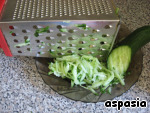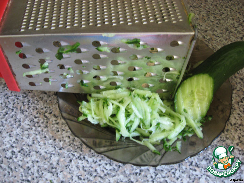 Натереть на крупной терке свежий огурец, слегка отжать сок.