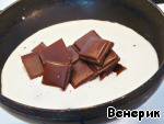 Для глазури нагреть сливки в ковшике (или сковороде), растопить шоколад в сливках