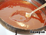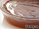 Залить ещё горячий корж шоколадной глазурью.