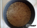 Измельчим в блендере печенье, масло и какао. Полученная масса будет служить подложкой для нашего чизкейка. Распределить массу по дну формы, приминая её ложкой.