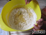 В большой миске смешиваем сахар и масло. Добавляем яйца и тщательно взбиваем вручную.