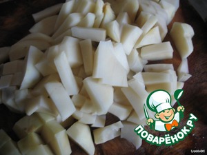 Картофель режем брусочками и туда же - в бульон