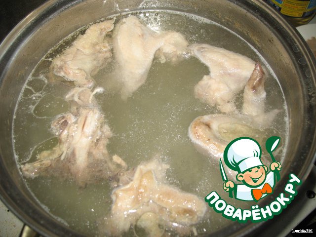 Варим бульон. У меня был куриный суповой набор. Как говорится: "Чем богаты..."