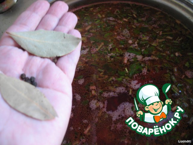 Кладем лавровый лист и перец горошком
