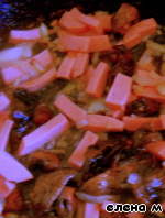 Грибы нарезать небольшими кубиками и обжарить вместе с луком, нарезанным кубиками на растительном масле