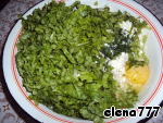 Порезать в эту массу листья салата, зелень укропа и петрушки, перемешать.